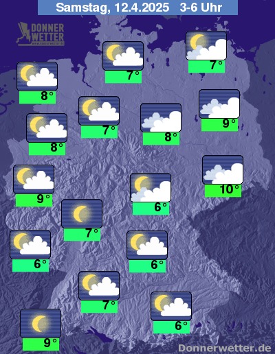 Die Temperaturen gehen in den frühen Morgenstunden zurück auf Werte um 10 bis 6 Grad.