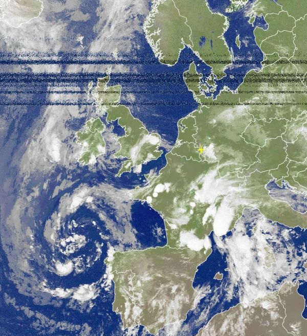 Auf dem europäischen Satellitenfoto von heute Morgen erkennen wir das Tiefdruckgebiet "Elisabeth" über dem Atlantik, mit seiner rotierenden Drehbewegung entgegen dem Uhrzeigersinn sorgt es für eine starke Luftmassenströmung vom südlichen Mittelmeerraum nach Norden, wobei über dem aufgewärmten Mittelmeerwasser vielfach feuchtwarme Luftmassen aufsteigen und in Richtung des nörlichen Mittelmeerraums und nach Frankreich weitertransportiert werden. Eindrucksvoll sind auch die zahlreichen Gewitterzellen über Frankreich zu erkennen, sie sorgten auch in der vergangenen Nacht für zum Teil schwere Gewitter mit ergiebigen und anhaltenden Niederschlägen.