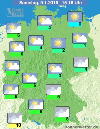 Heute Nachmittag bleibt es im Süden weitgehend stark bewölkt, dabei fällt am Alpenrand noch gebietsweise Regen, sonst bleibt es trocken. Von der breiten Landesmitte bis in den Norden Deutschlands ist es überwiegend heiter bis sonnig, nur gebietsweise ziehen mal dichtere Wolken durch, dabei bleibt es trocken. Die Temperatur steigt auf örtlich 0 Grad in Vorpommern und bis etwa 10 Grad im Breisgau.