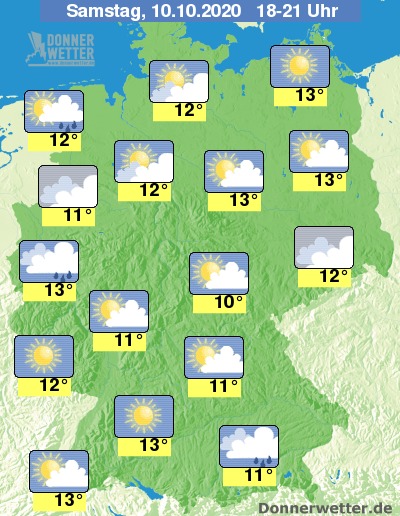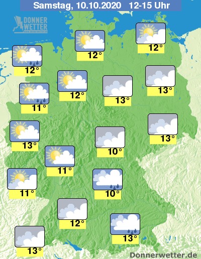 Heute Nachmittag zeigt sich das Wetter über der Nordwesthälfte oft heiter, vor allem im Nordwesten ziehen aber auch dichte Wolken durch, die hier einzelne Schauer und örtlich auch Gewitter bringen können. Im Süden und Osten halten sich oft viele und auch dichte Wolken, dazu fält im Süden gebietsweise Regen, sonst ist es trocken. Die Temperatur liegt bei herbstlichen 10 bis 13 Grad.