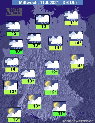 Die Temperaturen gehen in den frühen Morgenstunden zurück auf Werte um 14 bis 10 Grad.