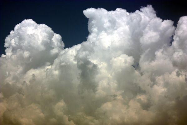Heute Nachmittag können sich bei teils dichten Quellwolken gebietsweise Schauer und zum Teil kräftige Gewitter entwickeln, wie auf unserem Bild hier:
