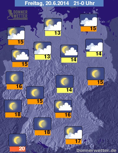Am Abend klingen letzte Schauer meist rasch ab, so dass es nachfolgend überall trocken bleibt. Dazu lockert die Bewölkung auch immer weiter auf und die Sterne können sich zunehmend zeigen. Die Abendwerte liegen bei teils sehr milden 20 Grad in Freiburg und etwa 13 Grad am Nordrand der Mittelgebirge.