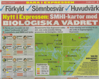 Schwedens größte Tageszeitung 'Expressen' führt in Schweden das Biowetter ein. In Zusammenarbeit mit Donnerwetter.de...