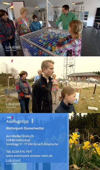 In gleich drei Ausgaben der Lokalzeit wurde am Samstag Abend unser Donnerwetter.de-Wetterpark auf dem Weißen Stein vorgestellt. In der WDR-Mediathek kann man den Beitrag noch einmal sehen: