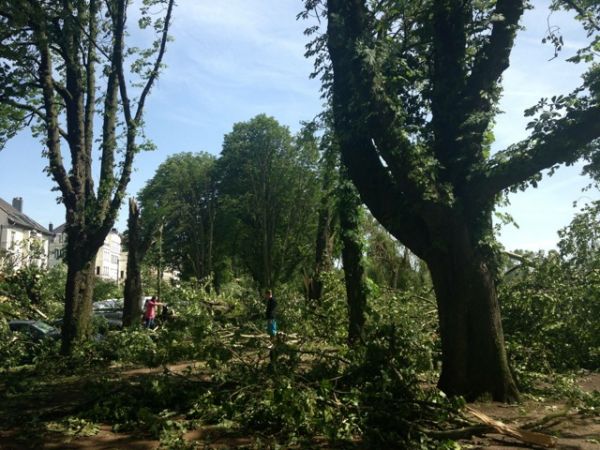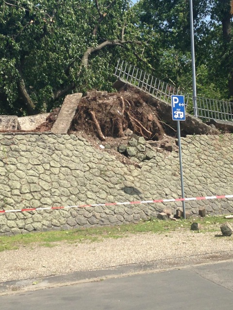 An der Cecilienallee am Düsseldorfer Rheinufer knickten wurden dickste Baumstämme wie Streichhölzer geknickt - Bild: Christian Deussen