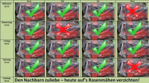 Die Garten- und Mähsaison erstreckt sich in diesem Jahr noch weit in den November hinein. Die milde Witterung sorgt selbst jetzt  Mitte November noch für Rasenwuchs.