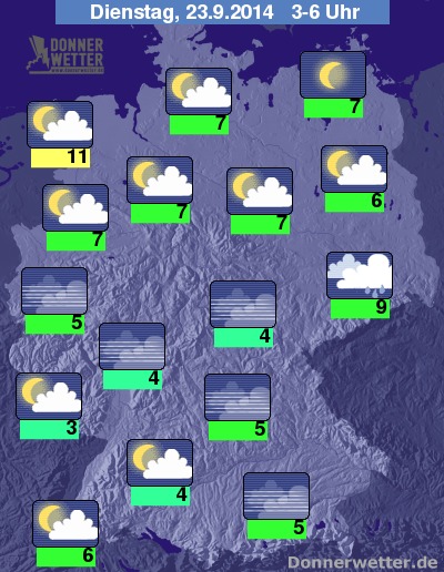 Die kommende Nacht bleibt vielerorts zwar niederschlagsfrei, dafür wird sie richtig kalt. Lokal können Tiefsttemperaturen um 5 °C der ein oder anderen wärmeliebenden Außenpflanze bereits zusetzen. In den Mittelgebirgen droht vereinzelt sogar der erste Bodenfrost!
