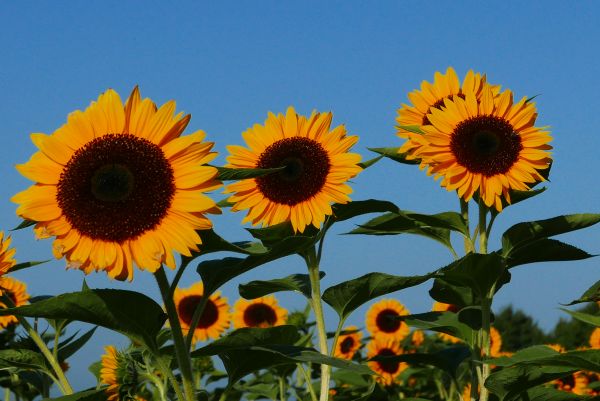Selbst der größte Blumenmuffel weiß, wie eine Sonnenblume aussieht oder könnte ein Bild von ihr richtig benennen. Es ist wieder Saison der Gute-Laune-Blume, weitläufige Sonnenblumenfelder stechen zur Zeit häufig in unser Auge.
