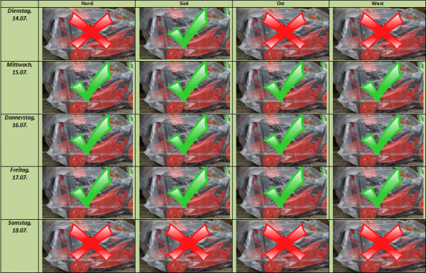 Bis Freitag steigen die Höchstwerte dann wieder auf bis zu 34 Grad C, dazu gibt es viel Sonnenschein.