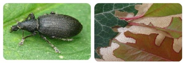 Erst mit der Dunkelheit macht er sich an unseren Pflanzen zu schaffen. Dabei bevorzugt der nachtaktive Dickmaulrüssler inbesondere Rhododendron, Efeu, Azaleen, Kirschlorbeer oder Rosen.