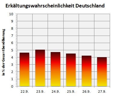 Bis zur Wochenmitte sind dann ca. 5 % der Menschen in Deutschland zumindest leicht erkältet.