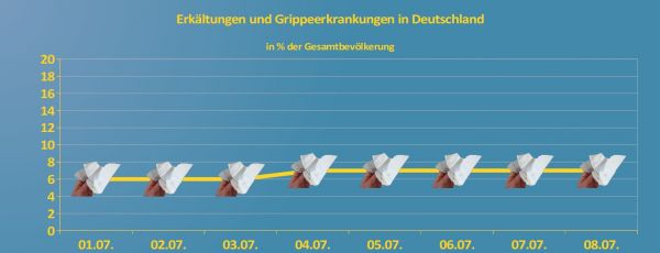 Wer annimmt, mit dem Juli würde es auch den hohen Erkältungs- und Grippezahlen an den Kragen gehen, der täuscht.