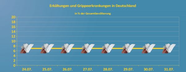 Bis zum letzten Juliwochenende schlagen sich sieben Prozent der Einwohner mit einem Husten oder Schnupfen herum.