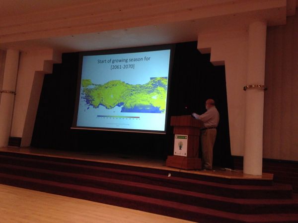 Zudem stellte Professor Dalfes auf der Konferenz das Projekt "Tarbil" vor, welches in der ganzen Türkei phänologische Daten per Satellit und Türme erfasst. Wetterdaten werden in diesem Projekt teilweise im 10-Minuten-Raster von den Türmen erfasst.