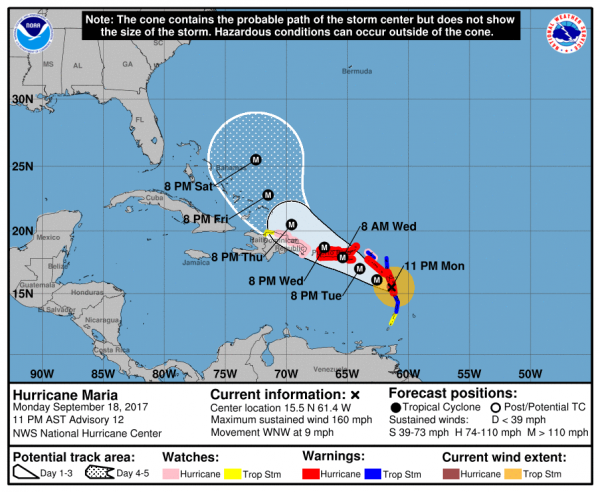 Auch auf der französischen Insel Guadeloupe wurden Evakuierungen eingeleitet, es drohten Überflutungen und Erdrutsche, hieß es. Der Gouverneur des US-Territoriums Puerto Rico, Ricardo Rossello, rief die Menschen auf, sich auf die Ankunft des Hurrikans vorzubereiten und Schutz zu suchen.