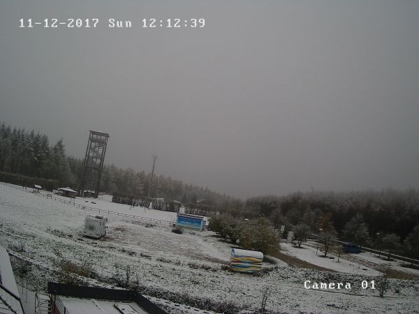 Auch am donnerwetter.de-Wetterpark in der hohen Eifel (700 m Höhe) gab es den ersten Schnee: