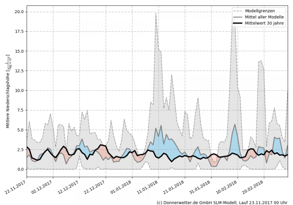 Die kommenden Wochen bringen der Südhälfte mittlere Lufttemperaturen, die sich meist unter dem langjährigen Durchschnitt bewegen. Immerhin liegen die zu erwartenden Niederschlagsmengen bis Mitte Januar häufig unter dem Mittel. Phasen mit mehr Sonne als sonst beschränken sich in diesem Jahr auf die erste Dezemberhälfte.
