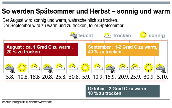 Unsere aktuelle Langfristprognose deutet nach einem bisher eher durchwachsenen Sommer auf einen tollen Spätsommer und Frühherbst hin!