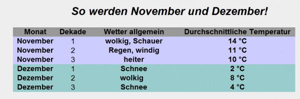 Langfristprognose für den Spätherbst / Winter 2016