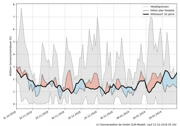 Unsere aktuellen Langfristprognosen für Lufttemperatur, Sonnenscheindauer und Niederschlagshöhe.
