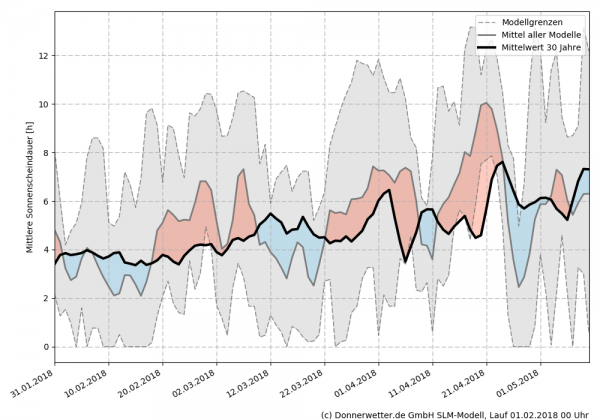 Unsere aktuellen Langfristprognosen für Lufttemperatur, Sonnenscheindauer und Niederschlagshöhe.