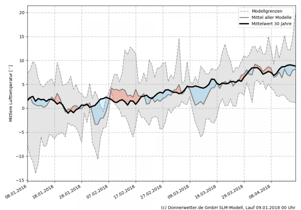 Große Sprünge machen die Temperaturen in den nächsten Wochen im Osten nicht - weder nach oben noch nach unten. Die zu erwartende Sonnenscheindauer schreibt ein eindeutigeres Bild, aus heutiger Sicht ist es über weite Strecken zu sonnenarm.