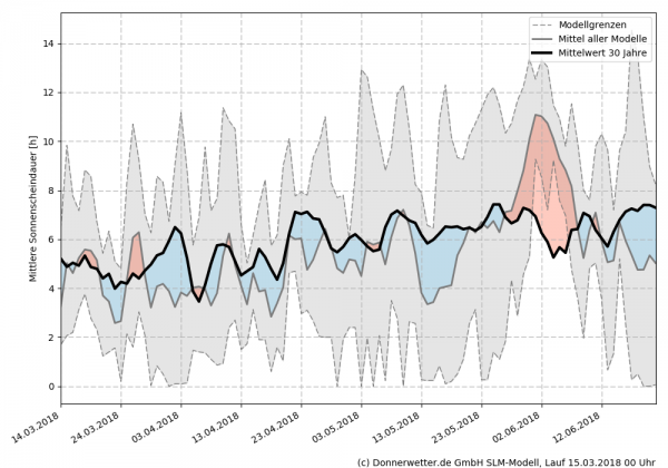 Unsere aktuellen Langfristprognosen für Lufttemperatur, Sonnenscheindauer und Niederschlagshöhe.