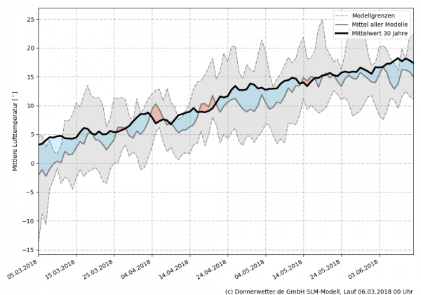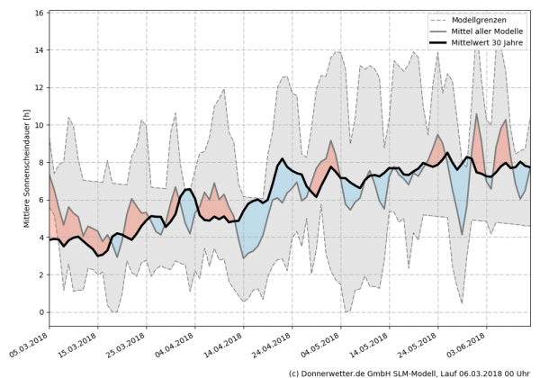 Unsere aktuellen Langfristprognosen für Lufttemperatur, Sonnenscheindauer und Niederschlagshöhe.