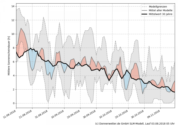 Die Temperaturkurve für den Osten normalisiert sich laut aktueller Berechnungen in den nächsten Wochen wieder und auch Niederschläge erhalten wieder Einzug. Die Zahl der zu erwartenden Sonnenstunden bewegt sich bis Ende kommenden Monats über dem langjährigen Mittel.