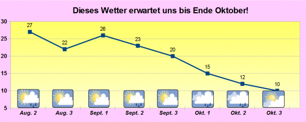 Im weiteren Septemberverlauf gibt es dann wieder den für diesen Sommer bereits nicht untypischen Mix aus mäßig-warmen Temperaturen, Sonne und Wolken im Wechselspiel und zeitweiligen Schauern.