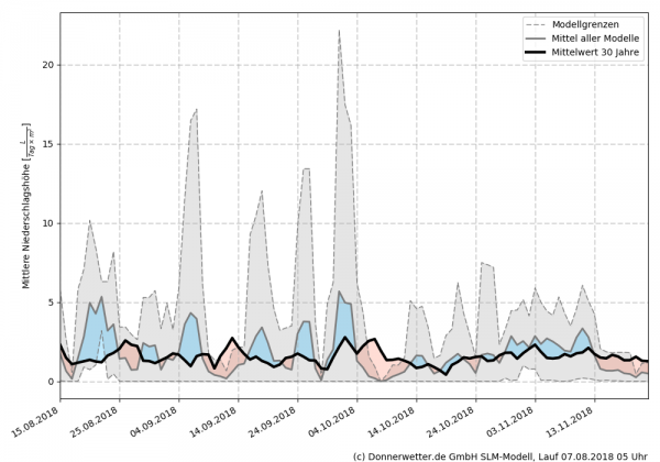Der Blick auf unsere Grafiken zeigt: Die aktuellen Langfristmodelle gehen im Westen auch in den kommenden Wochen von überdurchschnittlich warmen Temperaturen und deutlich über dem langjährigen Mittel liegenden Anzahl an Sonnenstunden aus. Die Trockenheit wird uns weiter begleiten, dennoch steigt das Schauerrisiko im weiteren Verlauf des Spätsommers phasenweise an.