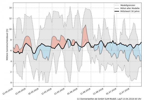 Unsere aktuellen Langfristprognosen für Lufttemperatur, Sonnenscheindauer und Niederschlagshöhe.