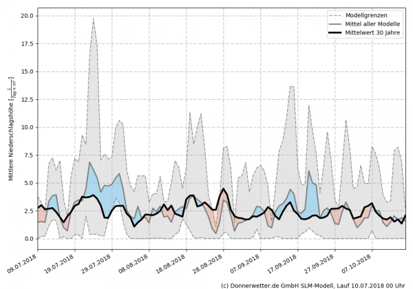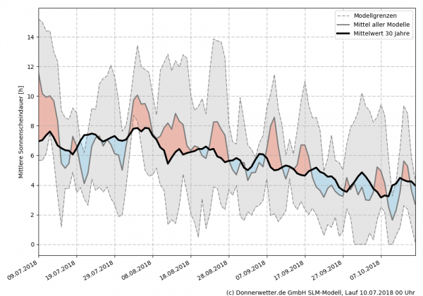 Die mittleren Lufttemperaturen verzeichnen in den kommenden Wochen im Vergleich zu den letzten Jahren laut aktueller Berechnungen einen kleinen Abwärtstrend. Zudem ist es bis Anfang August insgesamt zu nass, danach übernimmt die Sonne wieder häufig die Regie.