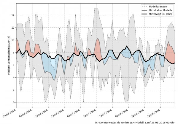 Unsere aktuellen Langfristprognosen für Lufttemperatur, Sonnenscheindauer und Niederschlagshöhe.