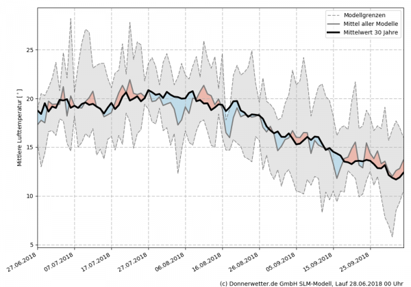 Unsere aktuellen Langfristprognosen für Lufttemperatur, Sonnenscheindauer und Niederschlagshöhe.
