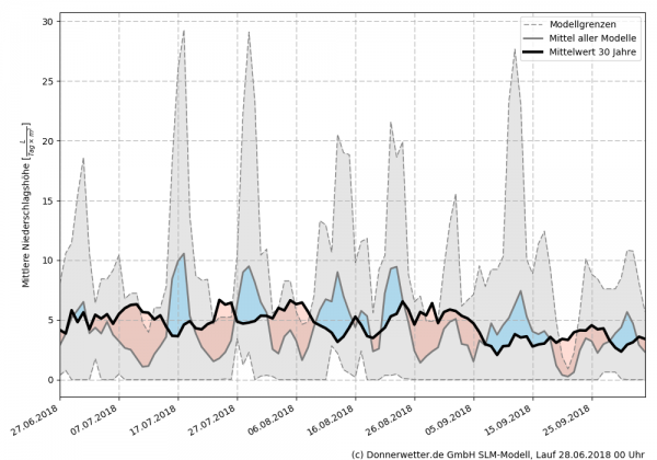 Bis auf wenige Ausnahmen bewegen sich die mittleren Lufttemperaturen im Süden in den nächsten Wochen unter dem langjährigen Durchschnitt, dabei ist es die meist Zeit zu niederschlagsarm. Die besten Chancen auf Sonne gibt es vor allem in der ersten Julihälfte.