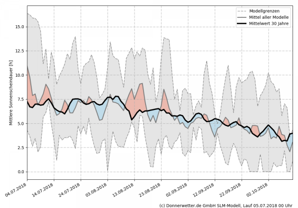 Unsere aktuellen Langfristprognosen für Lufttemperatur, Sonnenscheindauer und Niederschlagshöhe.