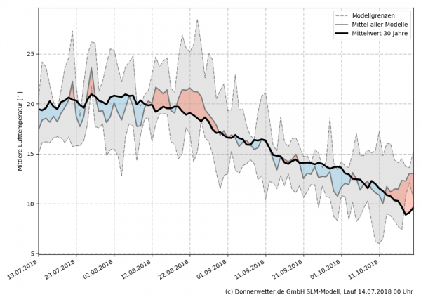 Derm Westen schlägt sich wacker. Er möchte die Durchschnittstemperatur bis Ende August von über 20 Grad C nicht hergeben. Trotzallerdem muss man sagen das in den laufenden Wochen die sonnenreichen Tage im Verhältnis zu den letzten Jahren mal auf und ab gehen. Man muss auch mit regnerischen Tagen rechnen.