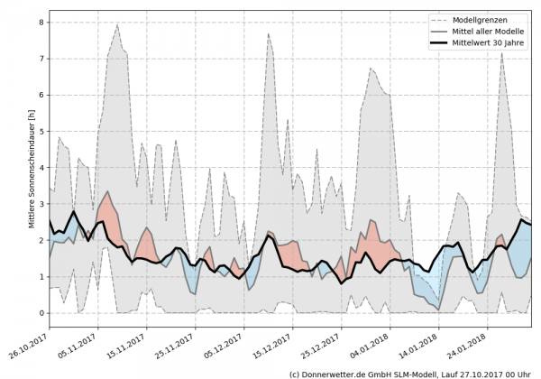 Unsere aktuellen Langfristprognosen für Lufttemperatur, Sonnenscheindauer und Niederschlagshöhe.