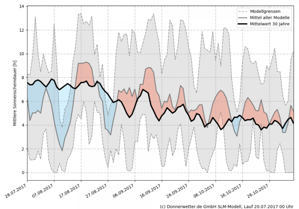 Viele freundliche aber auch feuchte Phasen, dazu Temperaturen meist deutlich über den langjährigen Mittelwerten - so berechnen unsere aktuellen Langfristprognosen zur Zeit den Wetterverlauf im September und Oktober. Eher kühl und mit wenigen Sonnenstunden kommt dagegen nach derzeitigem Stand der Zeitraum zwischen Ende Juli und Ende August daher - stimmen wir uns also schon mal auf den vermutlich goldenen Herbst ein!
