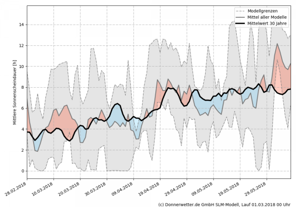 Unsere aktuellen Langfristprognosen für Lufttemperatur, Sonnenscheindauer und Niederschlagshöhe.