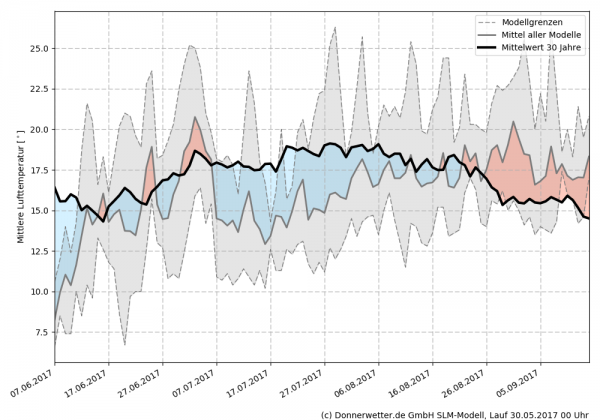 Das neue SLM-Modell von donnerwetter.de kann täglich neue Ensemble-Temperaturen, Niederschlagsprognosen sowie die Sonnenscheindauer für bis zu 360 Tage im Voraus berechnen.
