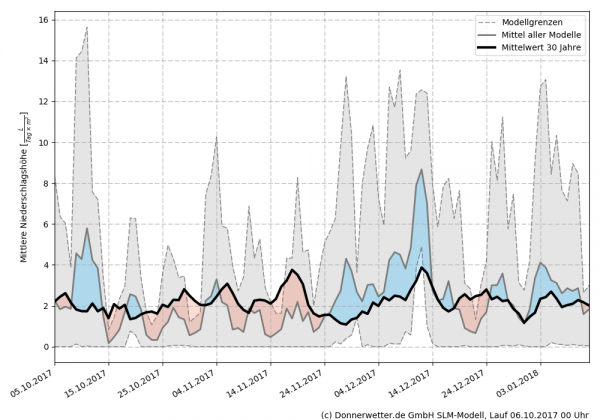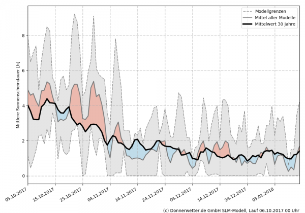 Von den Temperaturen und den zu erwartenden Niederschlagsmengen eher durchwachsene Herbstwochen liegen vor der Nordhälfte Deutschlands. Positiv hervor sticht die zur Zeit berechnete Sonnenscheindauer, inbesondere für den Zeitraum Mitte Oktober bis Anfang November.