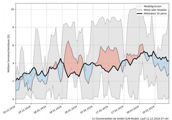 Unsere aktuellen Langfristprognosen für Lufttemperatur, Sonnenscheindauer und Niederschlagshöhe.