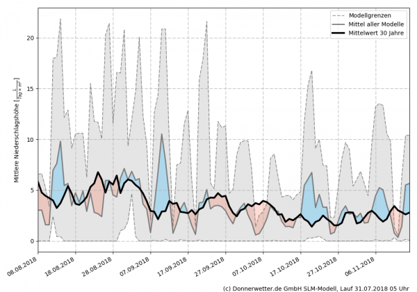 Ein Blick auf die Temperaturprognose der kommenden Wochen zeigt: Es bleibt auch weiterhin überdurchschnittlich warm. Zu trockene und zu nasse Phasen halten sich im Süden bis Ende September dabei meist die Waage. Ausgenommen die dritte Augustdekade ist zudem mit mehr Sonnenstunden als üblich zu rechnen.