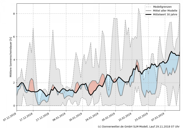 Unsere aktuellen Langfristprognosen für Lufttemperatur, Sonnenscheindauer und Niederschlagshöhe.