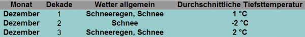 Die Detailprognosen für den Dezember in der Übersicht: