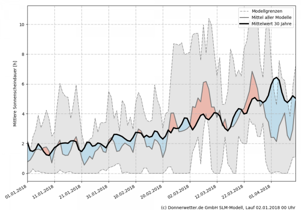 Unsere aktuellen Langfristprognosen für Lufttemperatur, Sonnenscheindauer und Niederschlagshöhe.