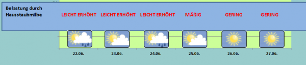 Über weite Teile der letzten Juniwoche stellt sich nämlich trockenes, sonniges und warmes Sommerwetter ein; die Außenluftfeuchtigkeit - und somit auch die Belastungen durch Hausstaub - sinken.